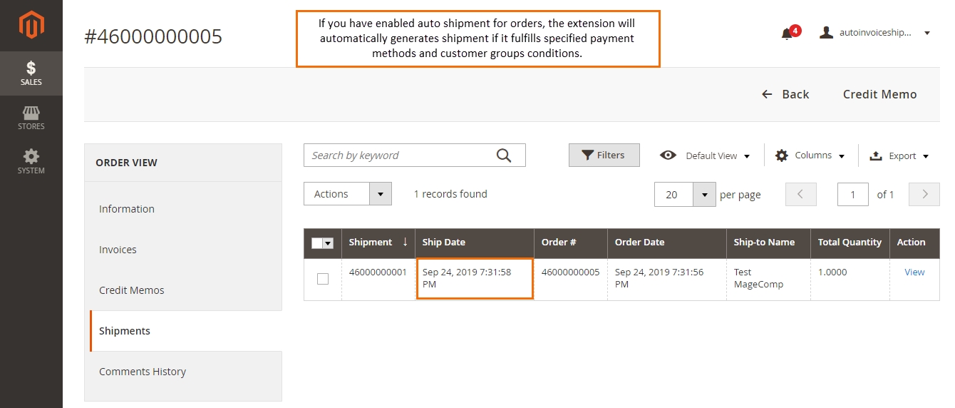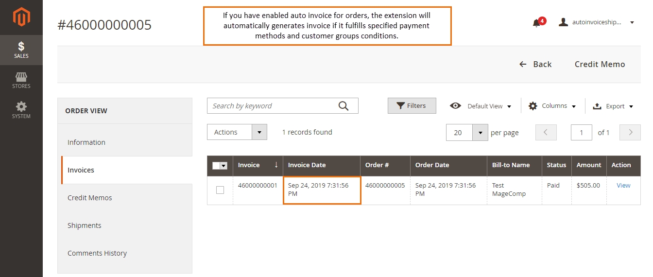 Once the payment is received or the order status is set to complete, the extension will automatically generate invoice and shipment.