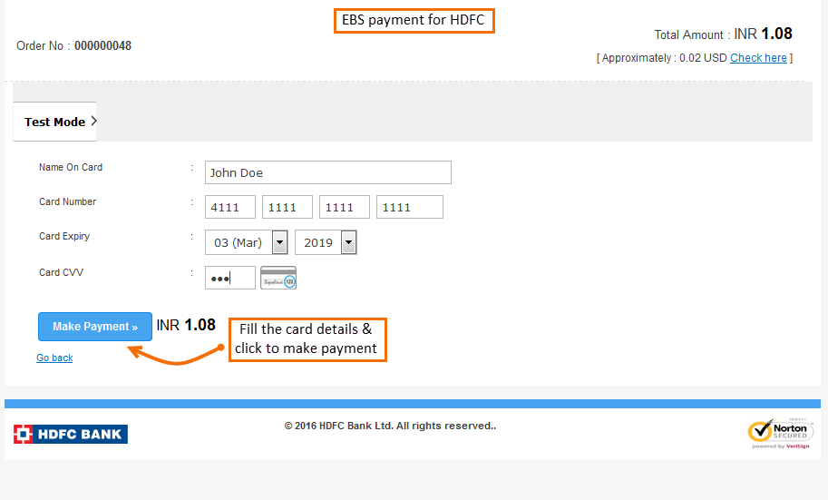 Once you place an order, it will redirect you to the EBS Payment gateway where you are asked to enter payment details. Click next to go further.