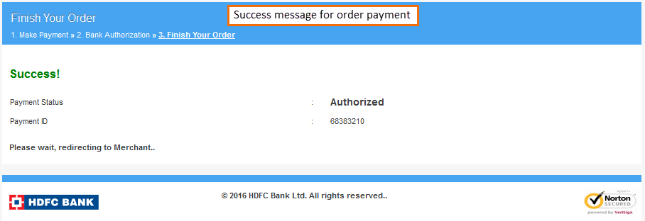Once you have paid, you get a success message.