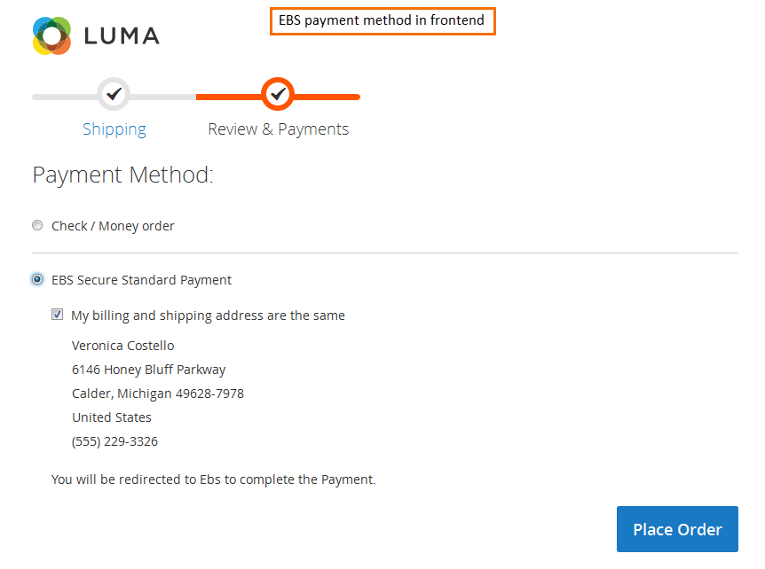 Once you have successfully configured EBS Payment, you can see it enabled in frontend.