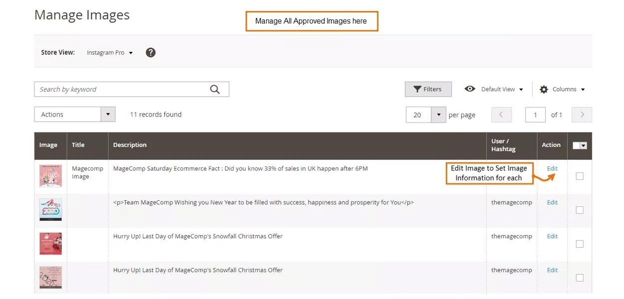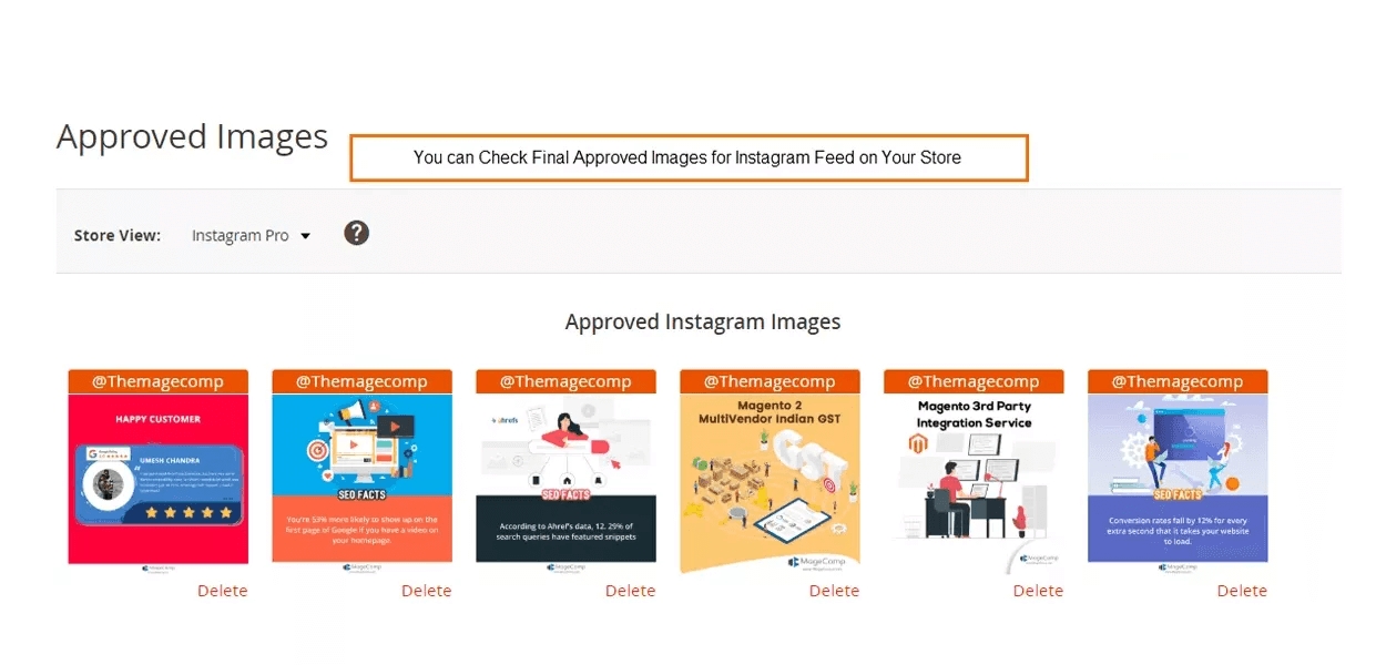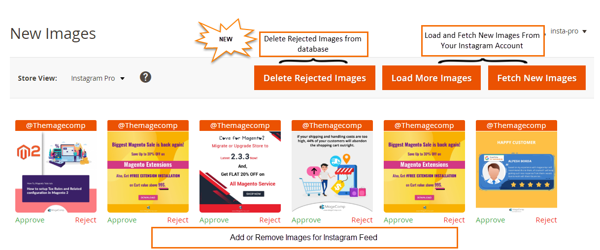 Once you have enabled and configured the extension properly from the backend, you will have control over managing all the databases of Instagram. You will have the option to fetch and load more images. Also, you have the option to clean the database if required.