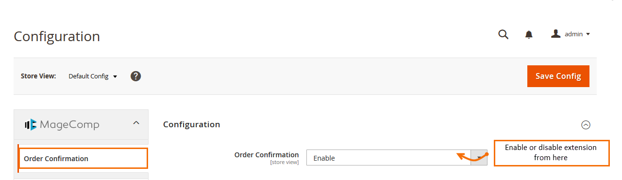 Order Confirmation Email: Enable or disable extension from here.