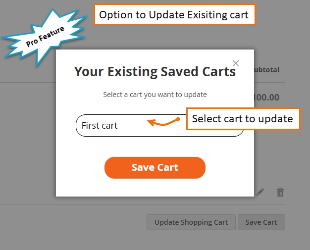 Save Cart Pro Extension users will get benefits of saving their cart in two ways either by creating a new cart or by updating the existing one.