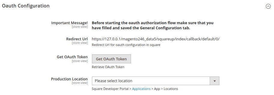 Production Access Token – Copy the Production Access Token from the Square account and paste it here.