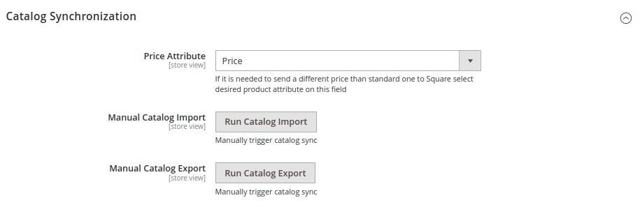 Manual Catalog Export – Run Catalog Export button helps to export product data to Square from Magento store.